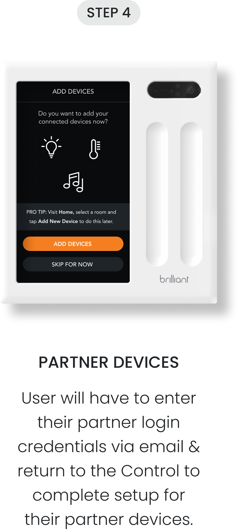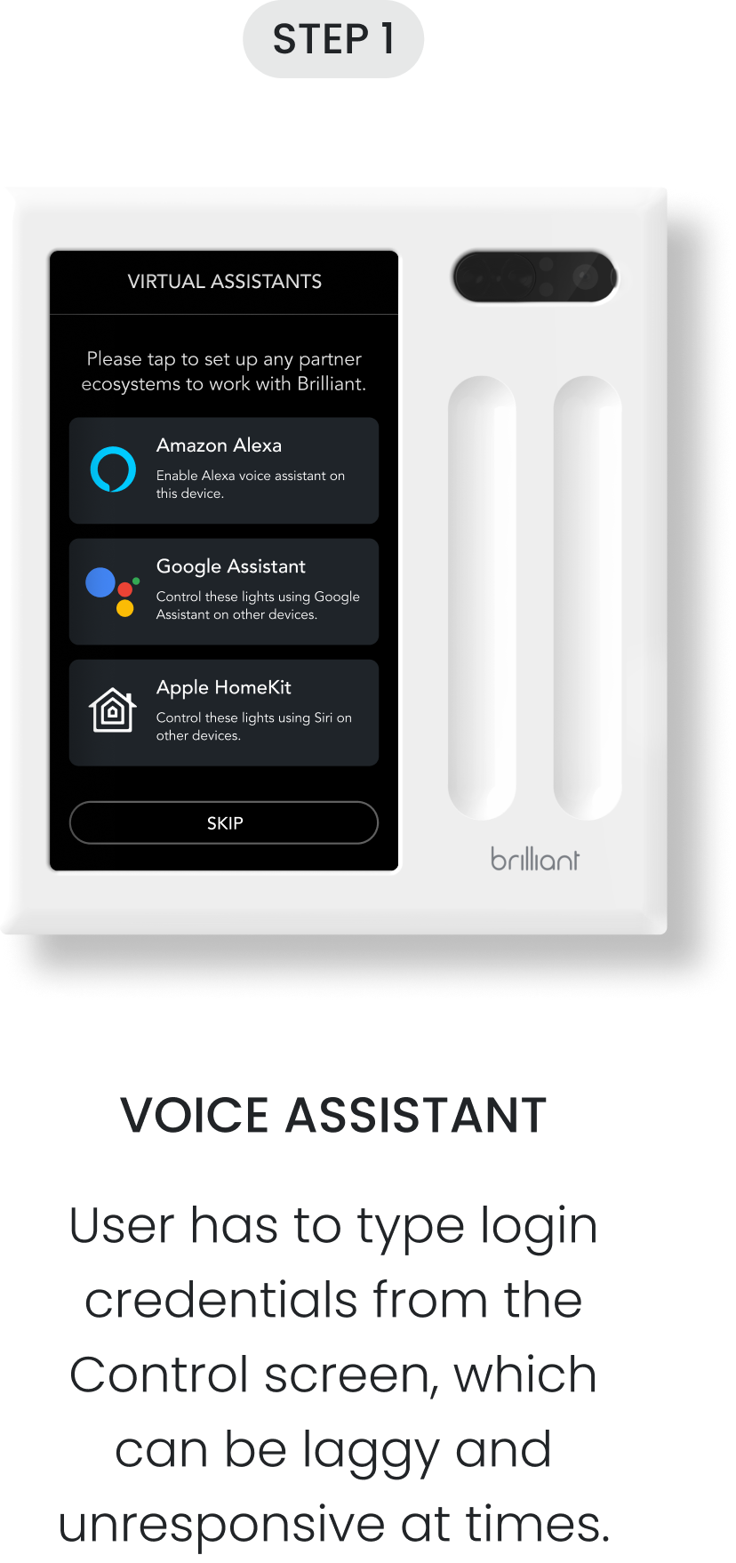 The Brilliant Control panel is often installed at an awkward height, forcing users to crouch down for extended periods of time to set up their smart home. Setting these features up can take some time on the Control and extend the installation process, frustrating users.